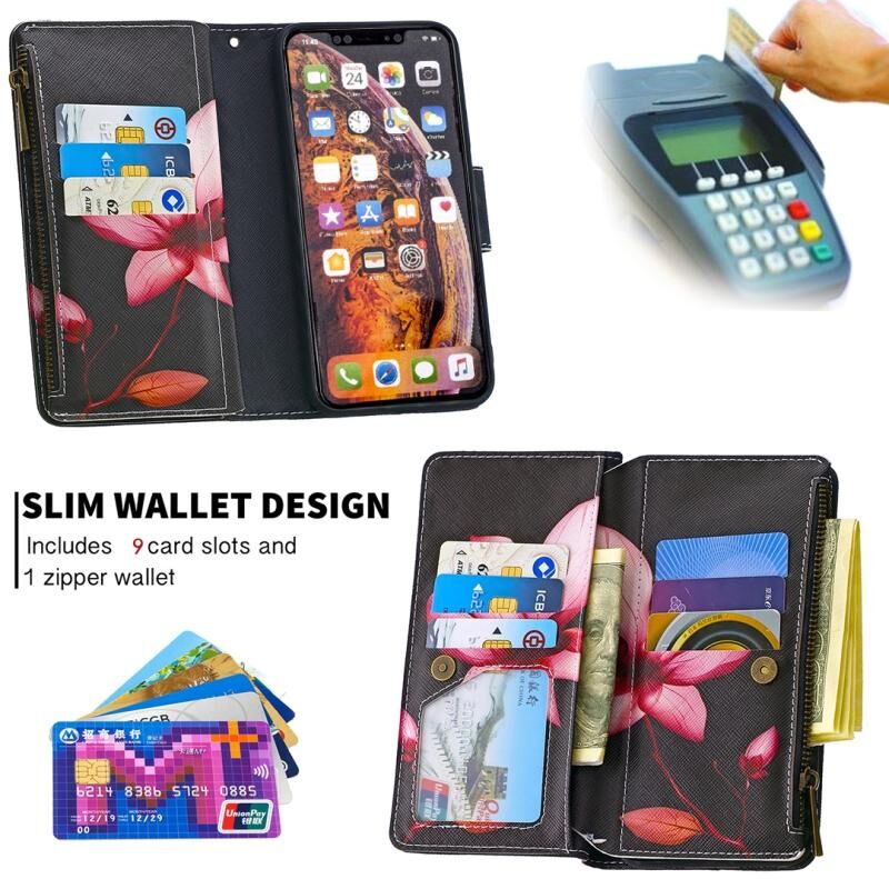 Θήκη δέρματος οριζόντιας αναδίπλωσης με φερμουάρ για iPhone XS Max με έγχρωμο σχέδιο, θήκη και υποδοχές καρτών & πορτοφόλι (Λωτός)