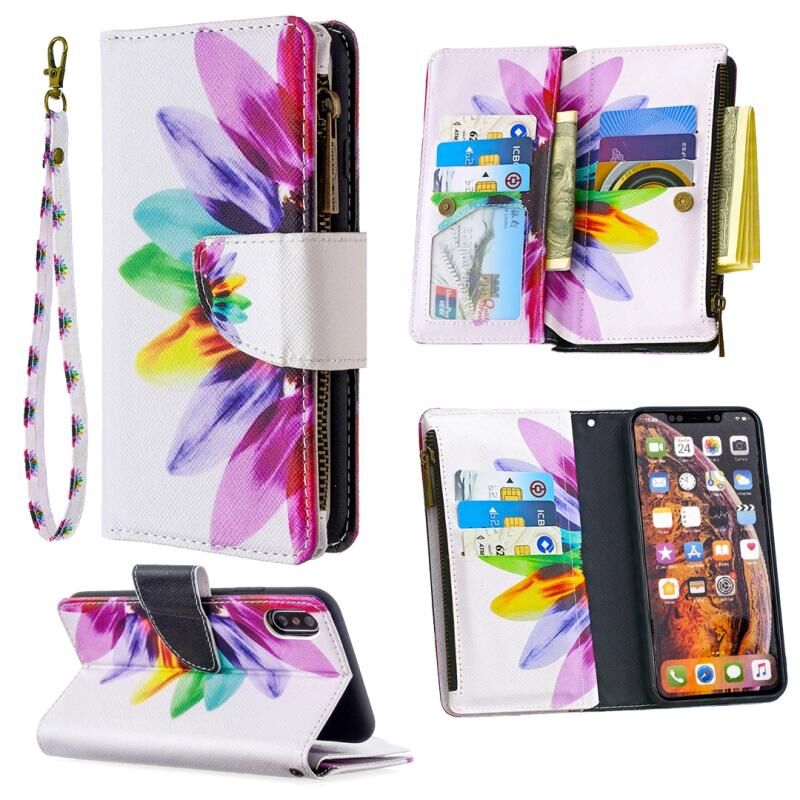 For iPhone XS Max Colored Drawing Pattern Zipper Horizontal Flip Leather Case with Holder & Card Slots & Wallet(Sun Flower)