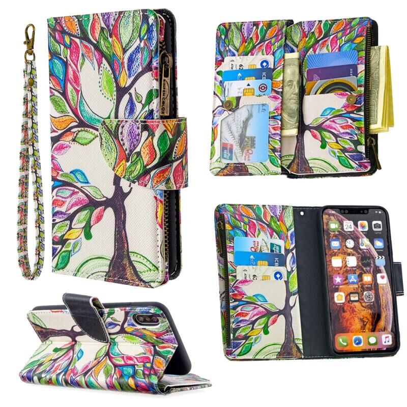 For iPhone XS Max Colored Drawing Pattern Zipper Horizontal Flip Leather Case with Holder & Card Slots & Wallet(Tree)