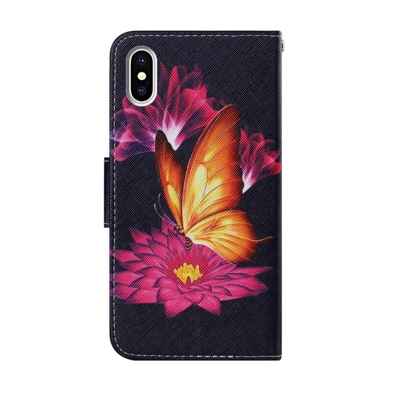 Θήκη για iPhone XS Max με έγχρωμο σχέδιο, οριζόντια αναδίπλωση από δερματίνη PU με βάση & υποδοχές καρτών & πορτοφόλι & κορδόνι (Μαύρο Μάρμαρο)