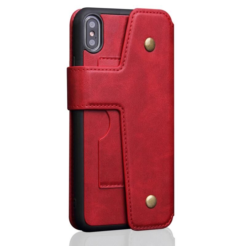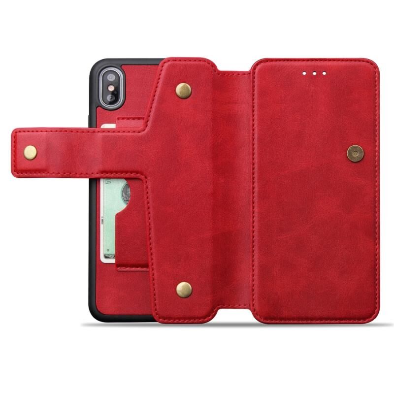 Θήκη δέρματος οριζόντιας αναδίπλωσης με μαγνητική απορρόφηση και αποσπώμενη υφή δέρματος αγελάδας για iPhone XS Max, με βάση & υποδοχές καρτών & πορτοφόλι (Κόκκινο)