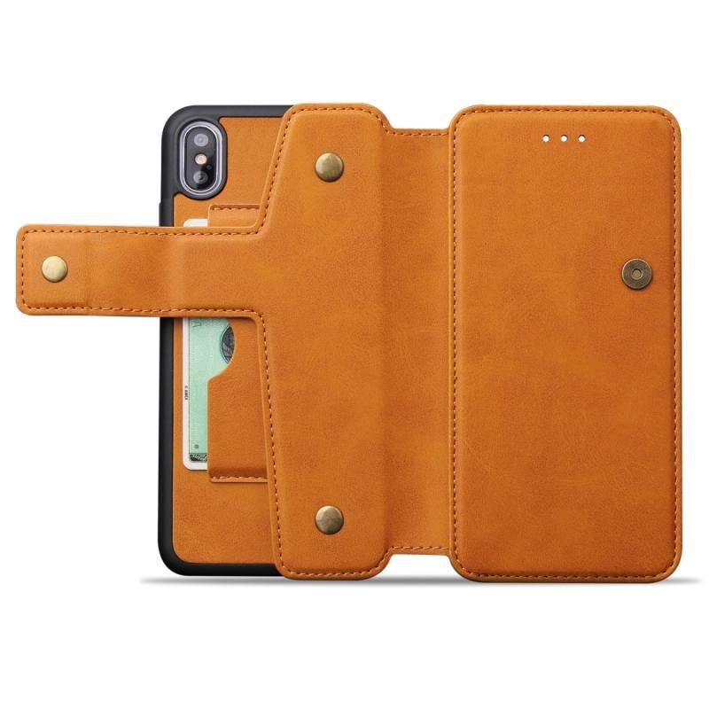 Θήκη δέρματος οριζόντιας αναδίπλωσης με μαγνητική απορρόφηση και αποσπώμενη υφή δέρματος αγελάδας για iPhone XS Max, με βάση & υποδοχές καρτών & πορτοφόλι (Κόκκινο)