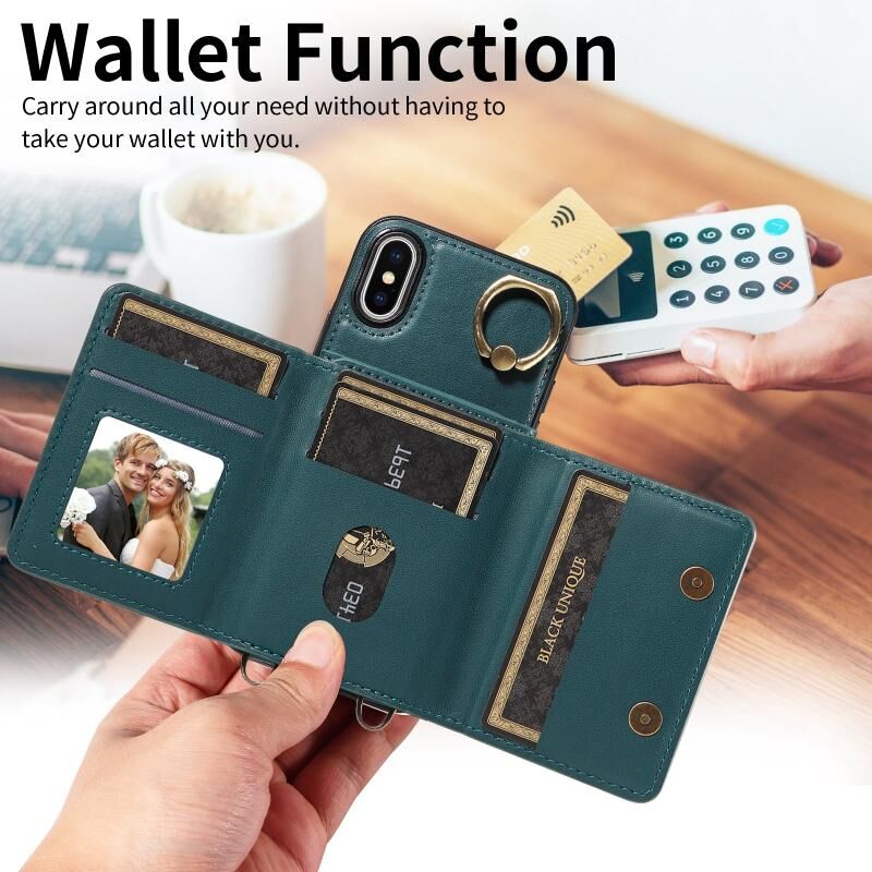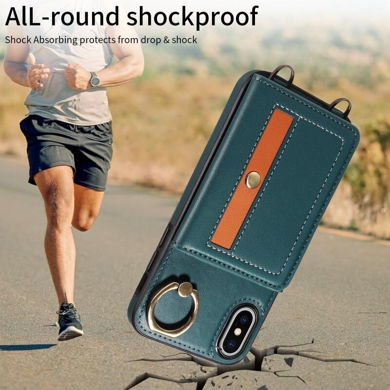 Θήκη τηλεφώνου δερμάτινη για iPhone XS Max με θήκη καρτών, λουρί Crossbody και δακτύλιο στήριξης (πράσινο)
