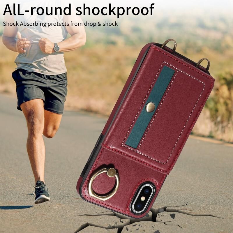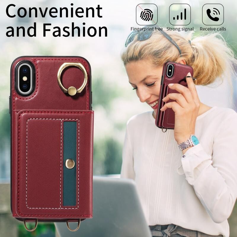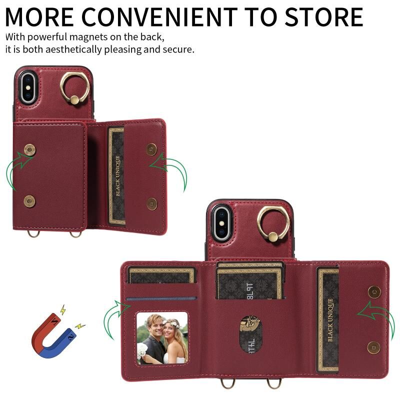 Θήκη τηλεφώνου δερμάτινη για iPhone XS Max με θήκη καρτών, λουρί Crossbody και δακτύλιο στήριξης (Κόκκινο)