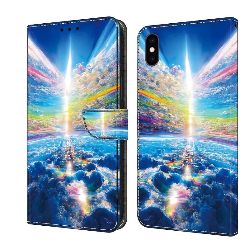 Θήκη τηλεφώνου από δέρμα με κρυστάλλινη ζωγραφική για iPhone XS Max (Πολύχρωμος Ουρανός)