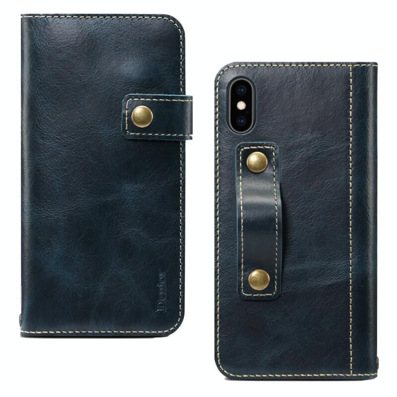 Για iPhone XS Max Denior Oil Wax Cowhide DK Μαγνητικό κουμπί οριζόντια Flip δερμάτινη θήκη με θήκη & υποδοχές για κάρτες & πορτοφόλι (σκούρο μπλε) (Denior)