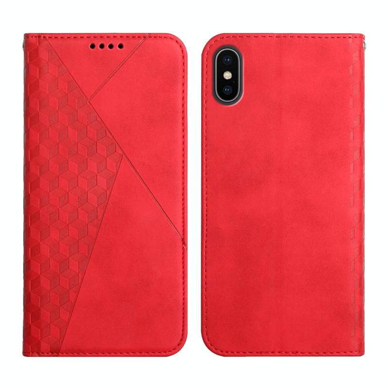For iPhone XS Max Diamond Pattern Splicing Skin Feel Magnetic Horizontal Flip Leather Case with Card Slots & Holder & Wallet(Red)