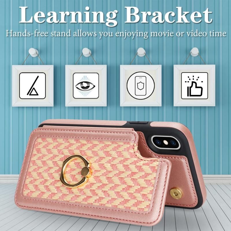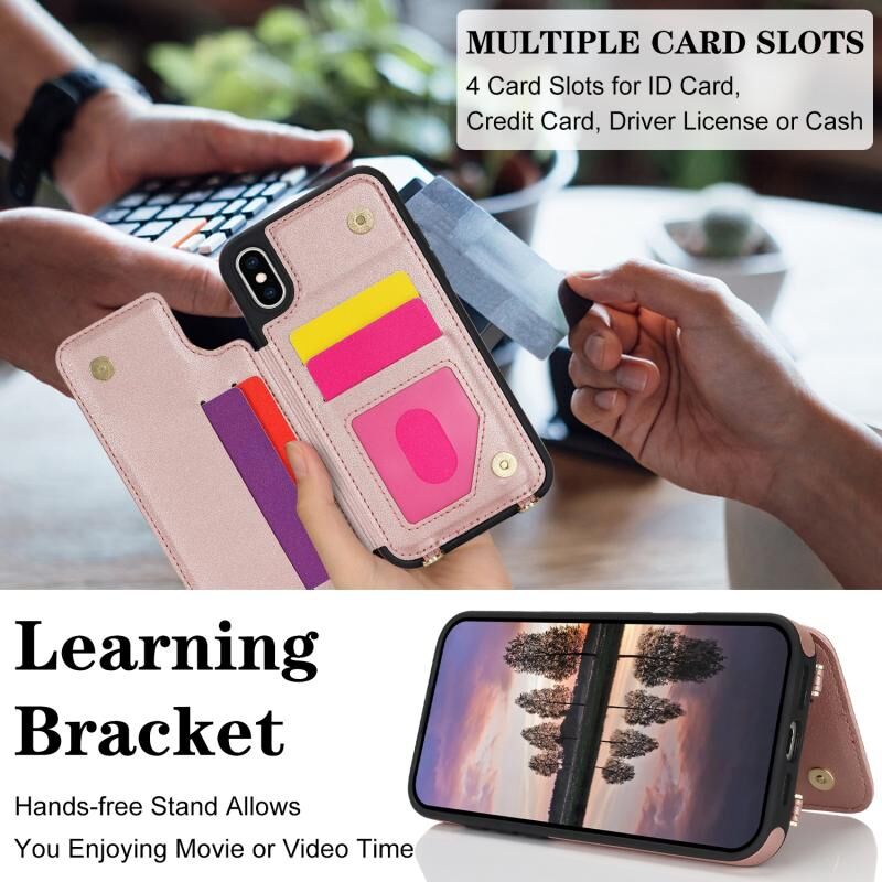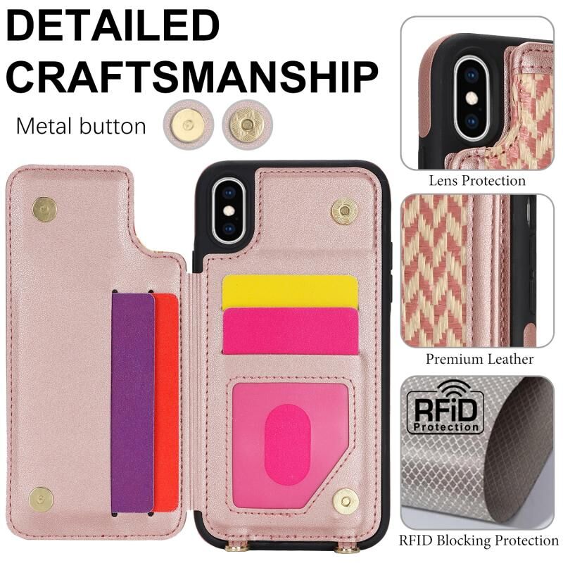 Θήκη τηλεφώνου για iPhone XS Max με διπλή θήκη για κάρτες, πλήρη κάλυψη και λουρί χιαστί (Χρυσό ροζ)