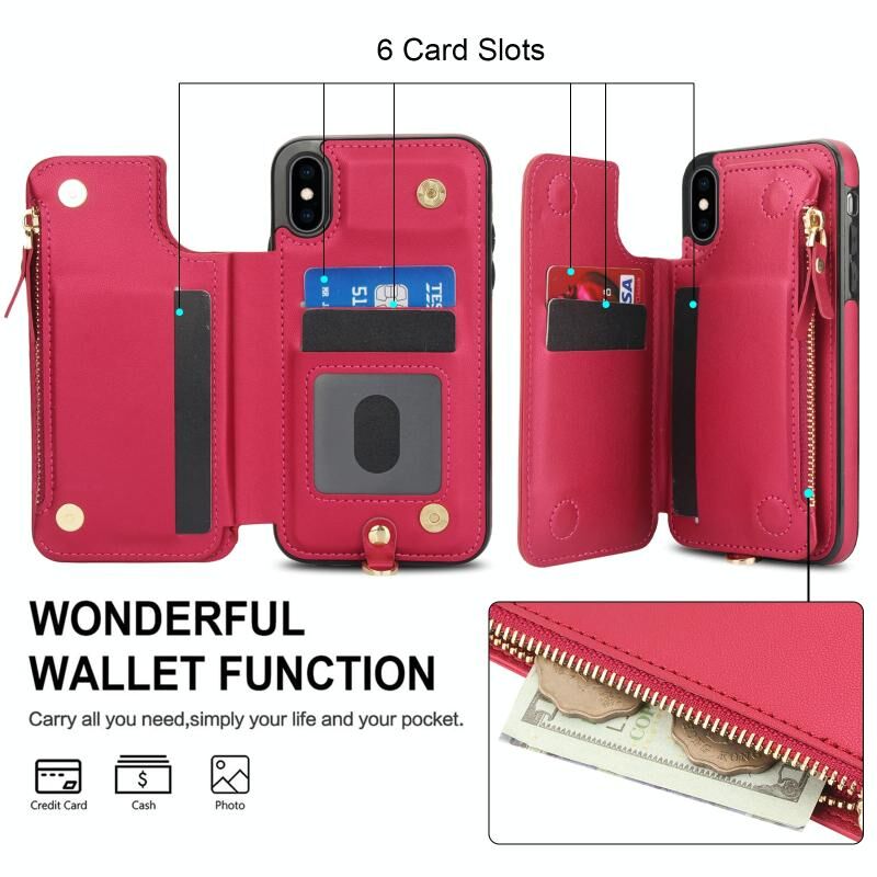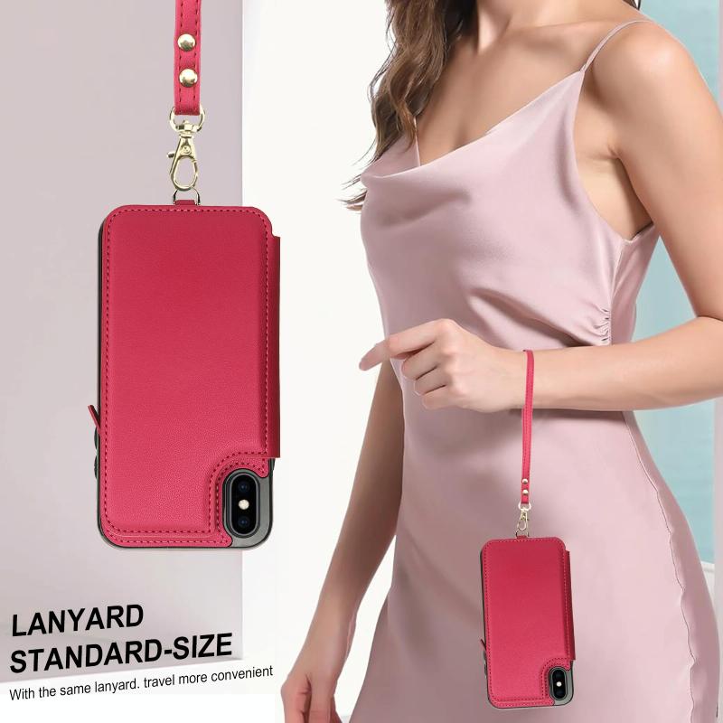 For iPhone XS Max Double Flap Zipper RFID Leather Phone Case with Short Lanyard(Red)