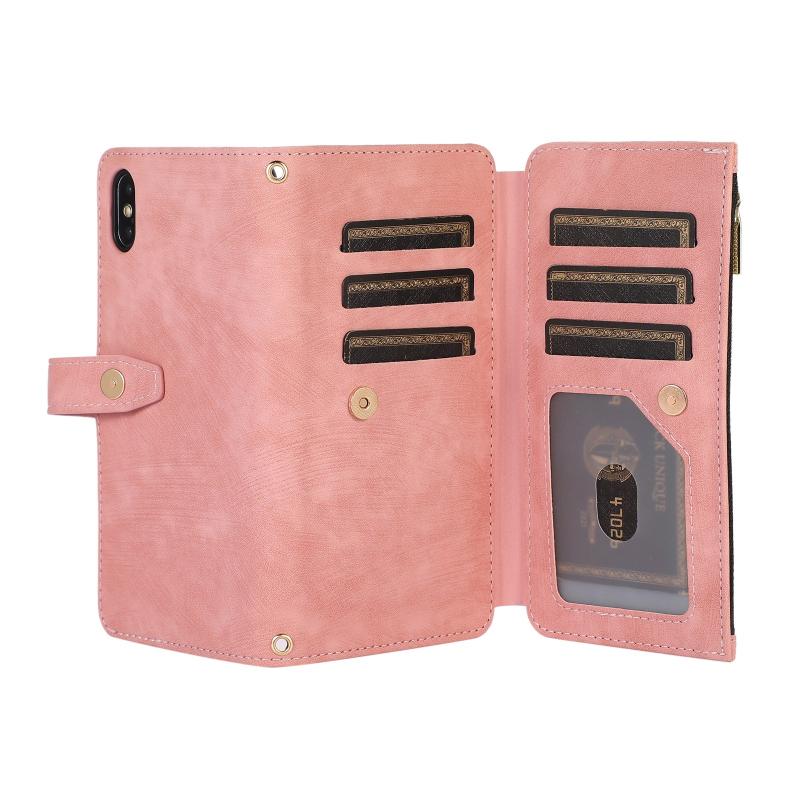 For iPhone XS Max Dream 9-Card Wallet Zipper Bag Leather Phone Case(Pink)