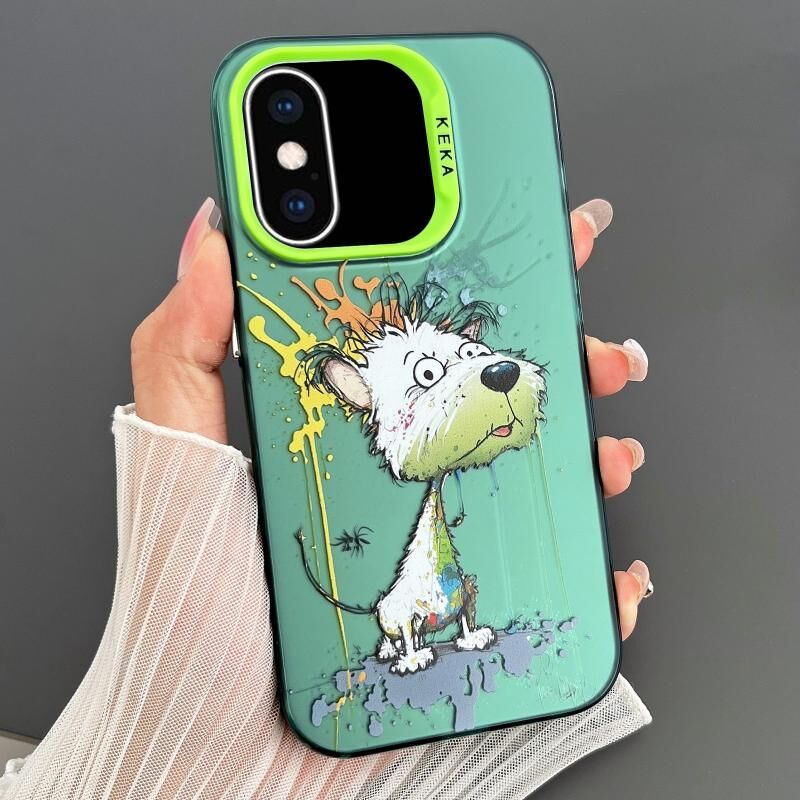 Θήκη τηλεφώνου για iPhone XS Max Διπλής όψης IMD με σχέδια Animal Graffiti από TPU + PC (Λιωμένο Πράσινο Πορτοκαλί Σκυλί)