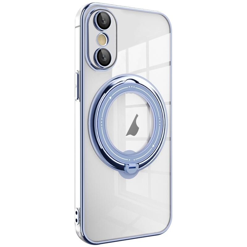 For iPhone XS Max Electroplating MagSafe 360 Degree Rotation Holder Shockproof Phone Case(Blue)