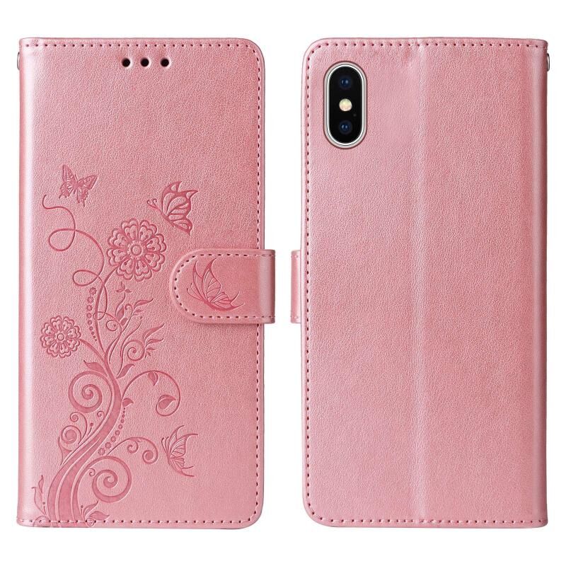 For iPhone XS Max Embossed Butterfly Flowers Leather Phone Case(Rose Gold)