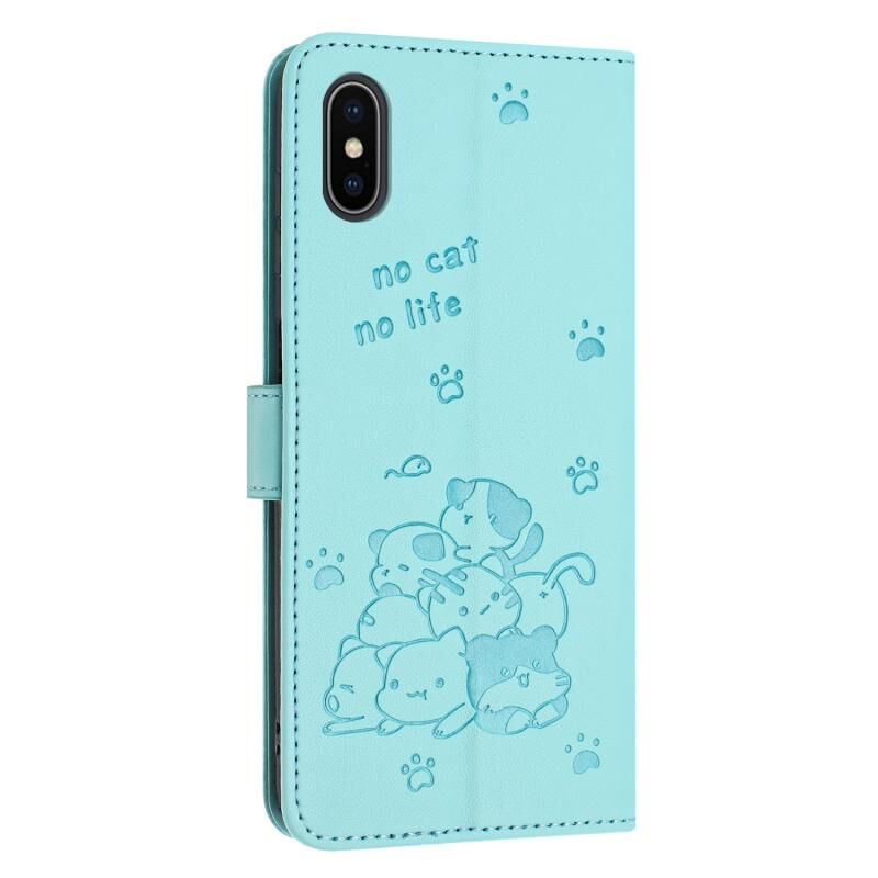 Θήκη δερμάτινη για iPhone XS Max με ανάγλυφο γατάκι και κορδόνι (Μωβ)