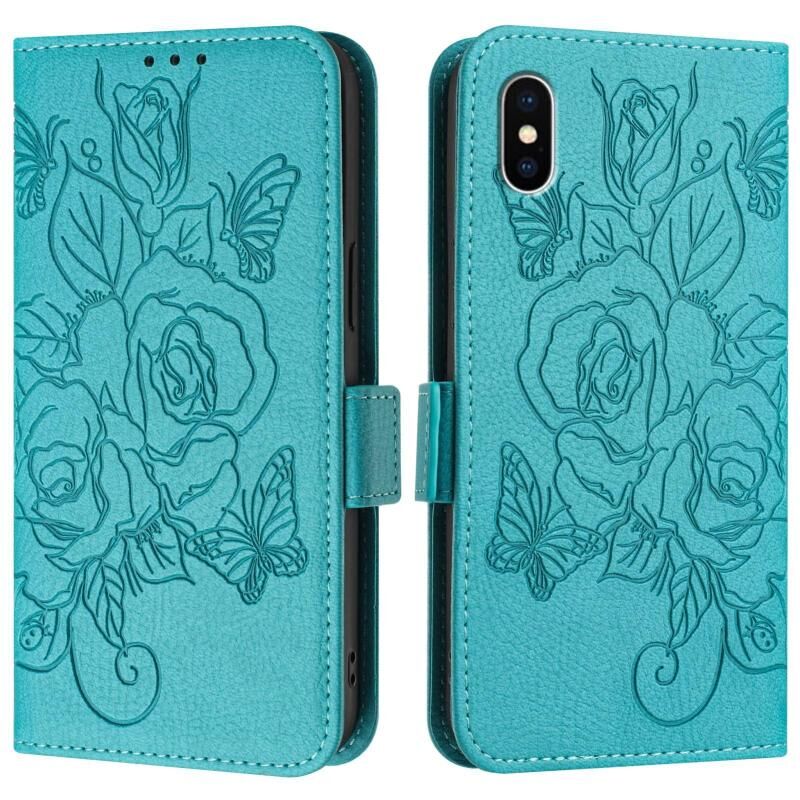 Θήκη τηλεφώνου δερμάτινη με ανάγλυφο σχέδιο τριαντάφυλλου και προστασία RFID κατά της κλοπής για iPhone XS Max (Πράσινο)
