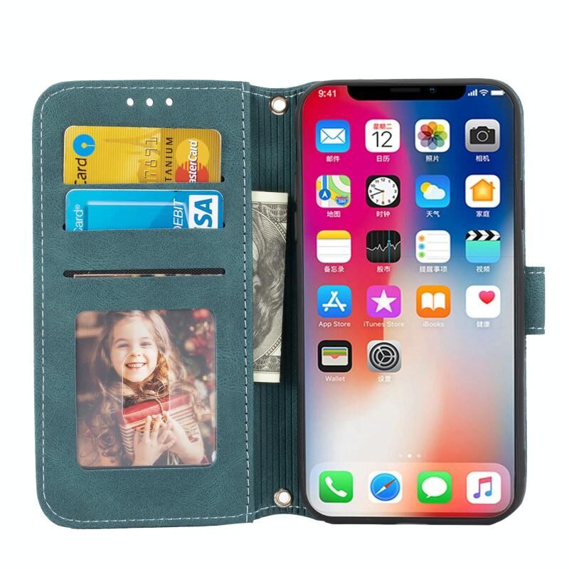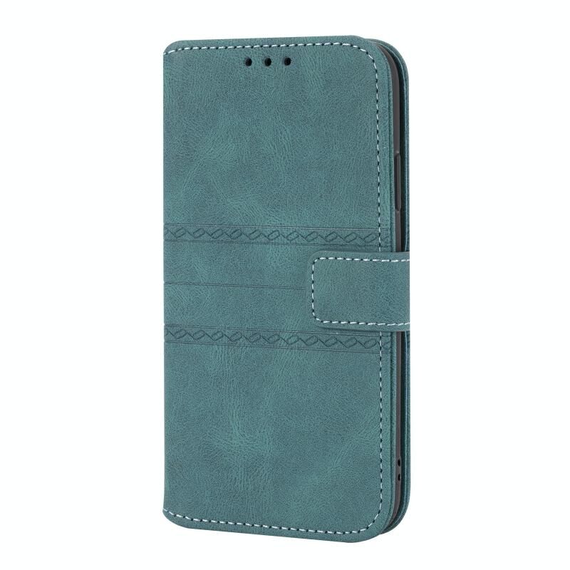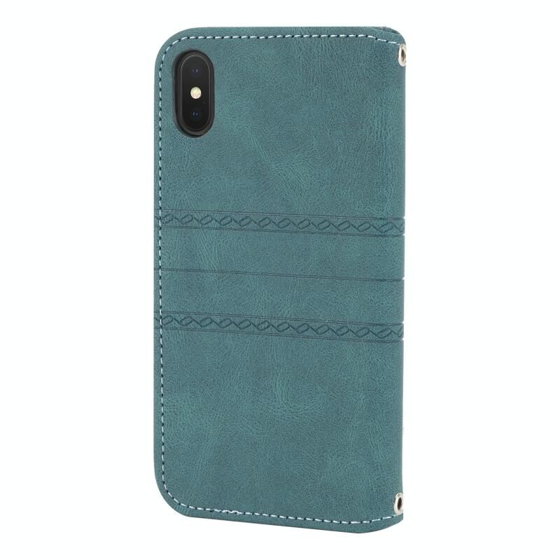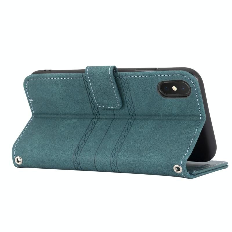 For iPhone XS Max Embossed Striped Magnetic Buckle PU + TPU Horizontal Flip Leather Case with Holder & Card Slot & Wallet & Photo Frame & Sling(Green)