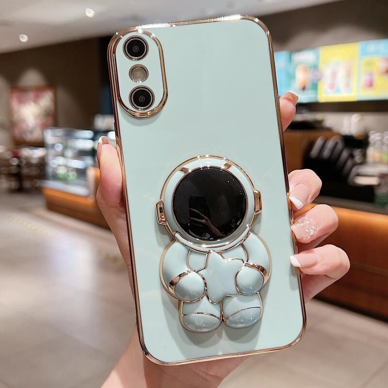 Θήκη κινητού τηλεφώνου για iPhone XS Max με ηλεκτρολυτική επίστρωση, αστροναύτη και σχέδιο αστεριών (Μωβ)