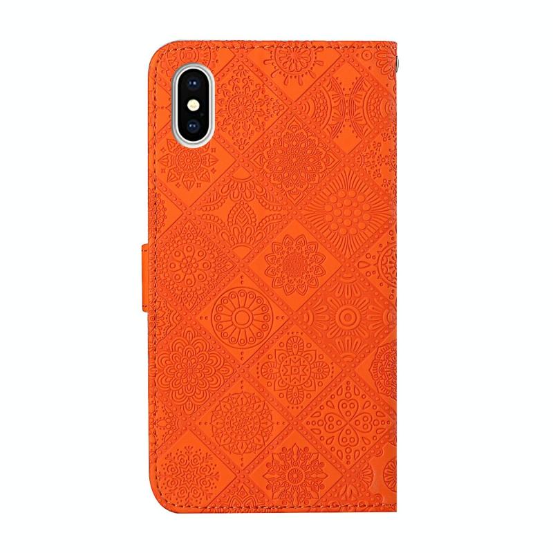 Θήκη για iPhone XS Max σε εθνικό στυλ με ανάγλυφο σχέδιο, οριζόντια, από δέρμα με βάση, θήκες για κάρτες, πορτοφόλι και κορδόνι (Πορτοκαλί)