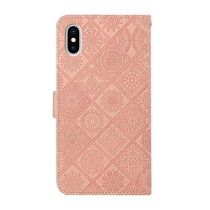 Θήκη για iPhone XS Max σε εθνικό στυλ με ανάγλυφο σχέδιο, οριζόντια, από δέρμα με βάση, θήκες για κάρτες, πορτοφόλι και κορδόνι (Ροζ)