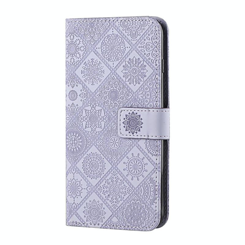 Θήκη για iPhone XS Max σε εθνικό στυλ με ανάγλυφο σχέδιο, οριζόντια, από δέρμα με βάση, θήκες για κάρτες, πορτοφόλι και κορδόνι (Μωβ)