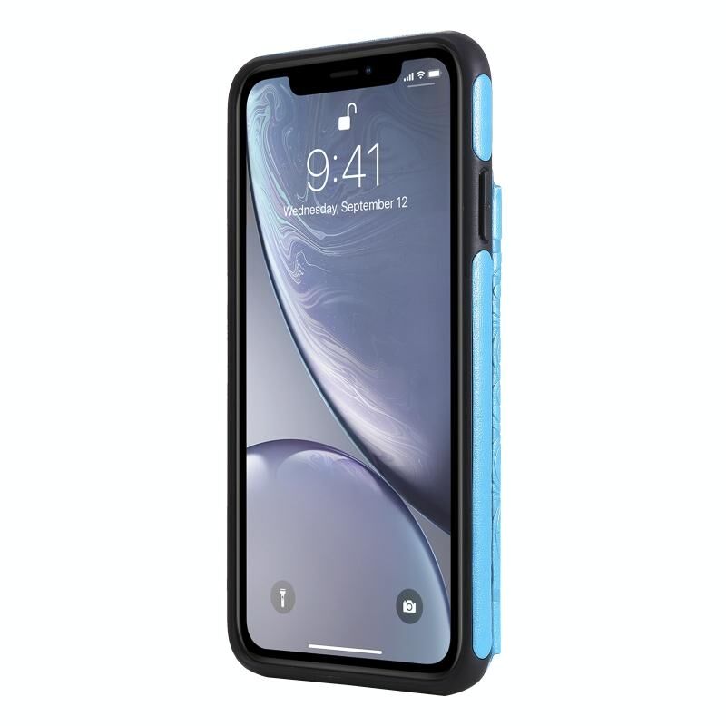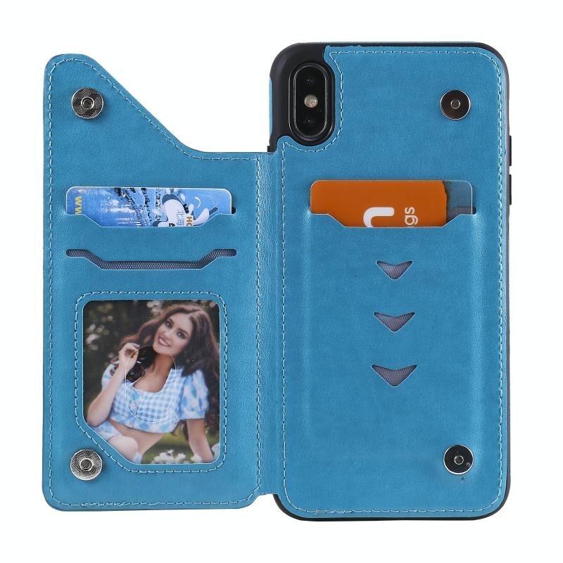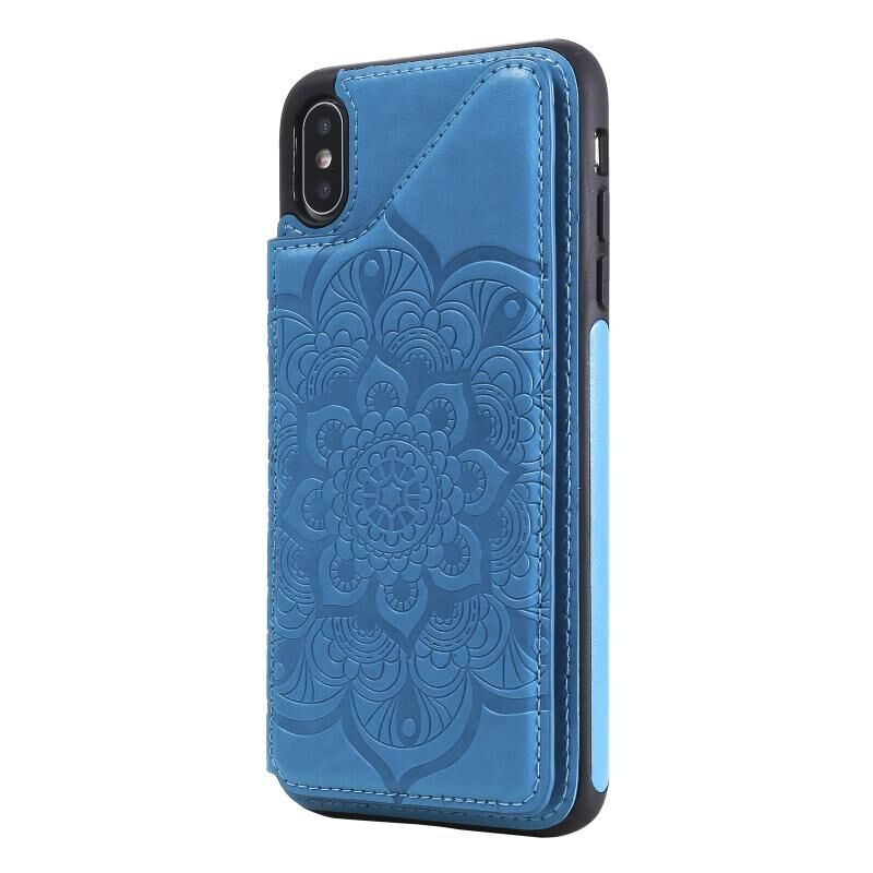 For iPhone XS Max Flower Embossing Pattern Shockproof Protective Case with Holder & Card Slots & Photo Frame(Blue)