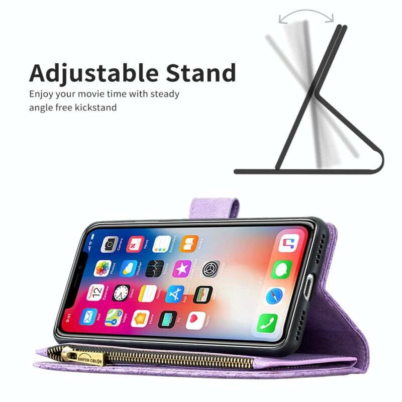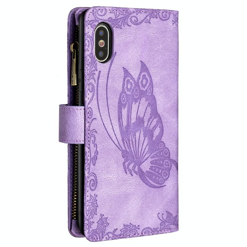 For iPhone XS Max Flying Butterfly Embossing Pattern Zipper Horizontal Flip Leather Case with Holder & Card Slots & Wallet(Purple)
