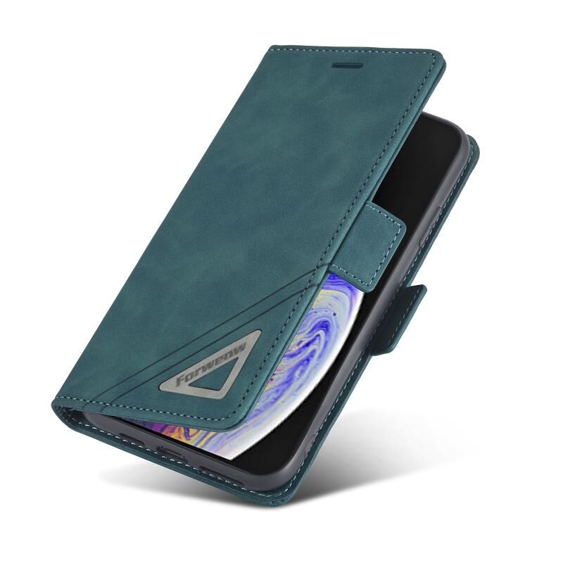 Θήκη τηλεφώνου δερμάτινη διπλής όψης με πόρπη για iPhone XS Max Forwenw (Κυανό σκούρο) (Forwenw)
