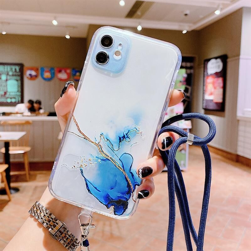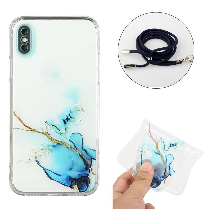 Θήκη για iPhone XS Max, κοίλο σχέδιο μαρμάρου, TPU αντικραδασμική προστατευτική με κορδόνι λαιμού (Κίτρινο)