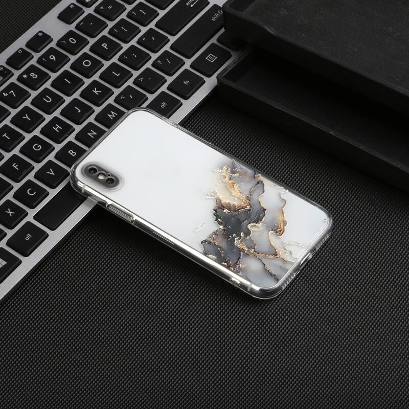 Θήκη προστασίας TPU με κοίλο σχέδιο μαρμάρου και ευθείες άκρες, με λεπτές οπές για iPhone XS Max (Κίτρινο-Μπλε)