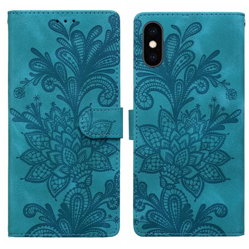 Θήκη τηλεφώνου για iPhone XS Max με δαντέλα, ανάγλυφο floral σχέδιο, μαγνητικό κούμπωμα και λουρί καρπού (Πράσινο)