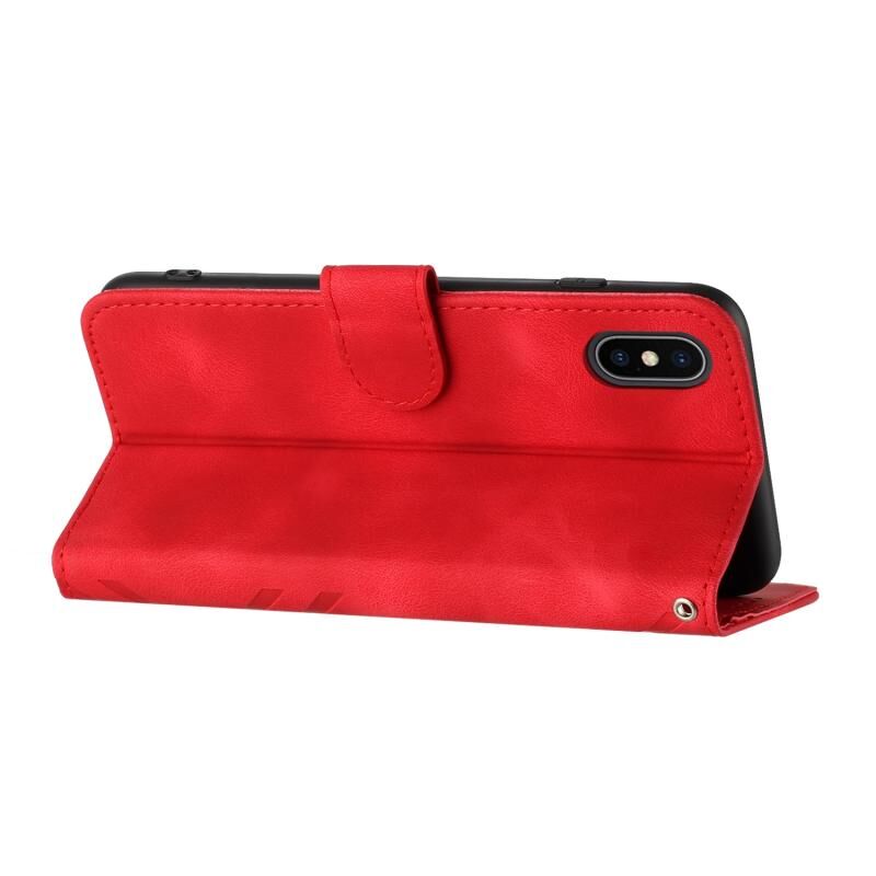 For iPhone XS Max Line Pattern Skin Feel Leather Phone Case(Red)