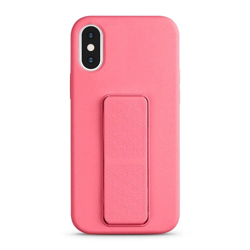 For iPhone XS Max Liquid Silicone Holder Phone Case(Rose Pink)