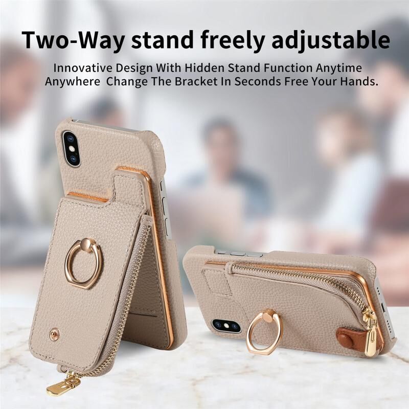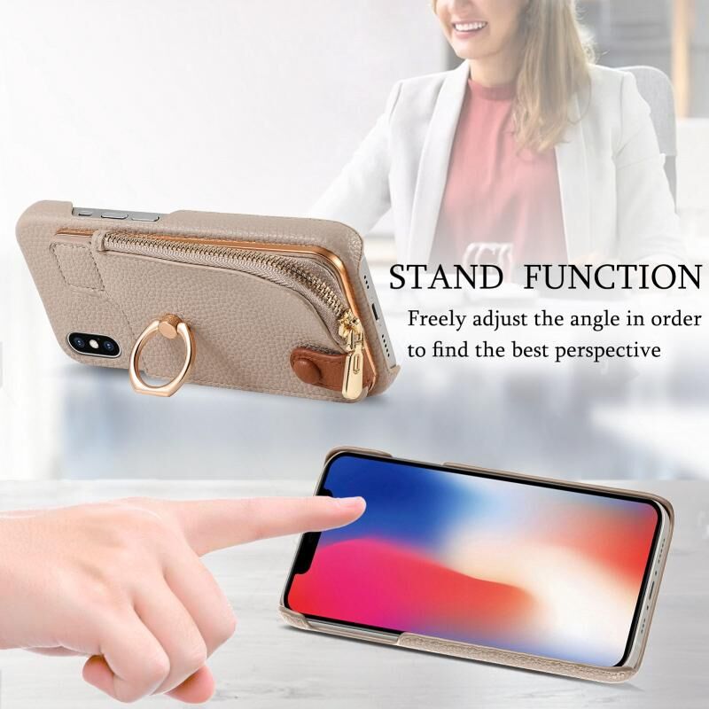 Θήκη κινητού τηλεφώνου για iPhone XS Max από δέρμα Litchi με λεπτές άκρες, δακτύλιο και φερμουάρ (Πράσινο του τσαγιού)
