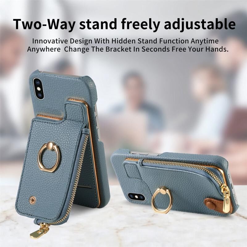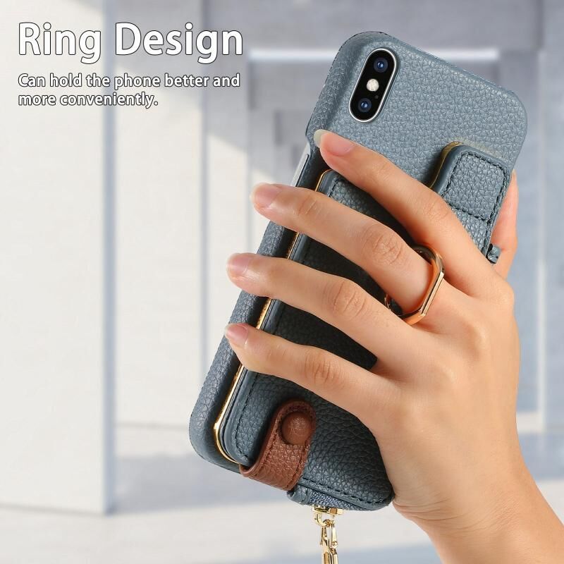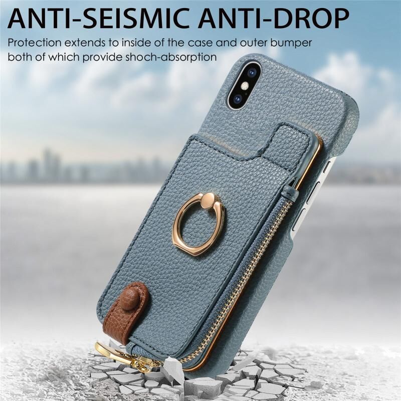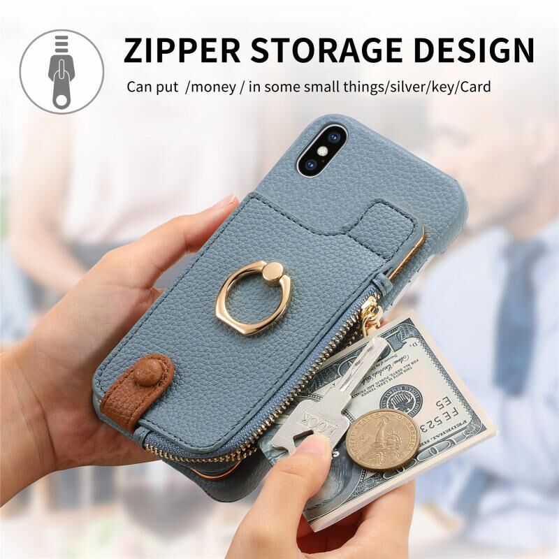Θήκη κινητού τηλεφώνου για iPhone XS Max από δέρμα Litchi με λεπτές άκρες, δακτύλιο και φερμουάρ (Πράσινο του τσαγιού)