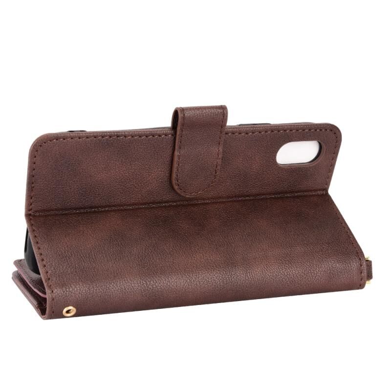 Θήκη τηλεφώνου από δέρμα με υφή λύτσι και φερμουάρ για iPhone XS Max (Καφέ)