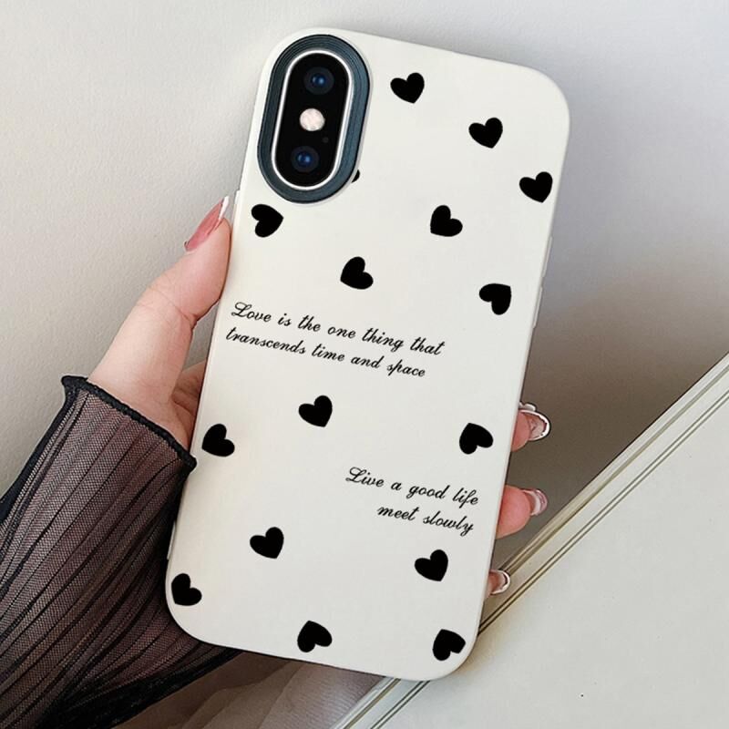 Θήκη τηλεφώνου για iPhone XS Max, Υβριδική από PC και TPU, με σχέδιο καρδιές (Λευκό)