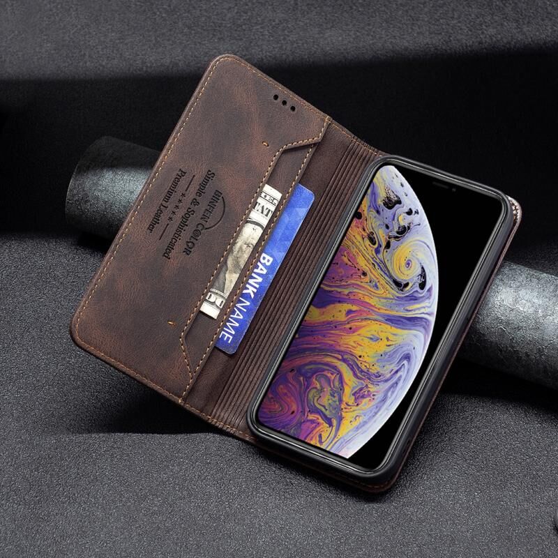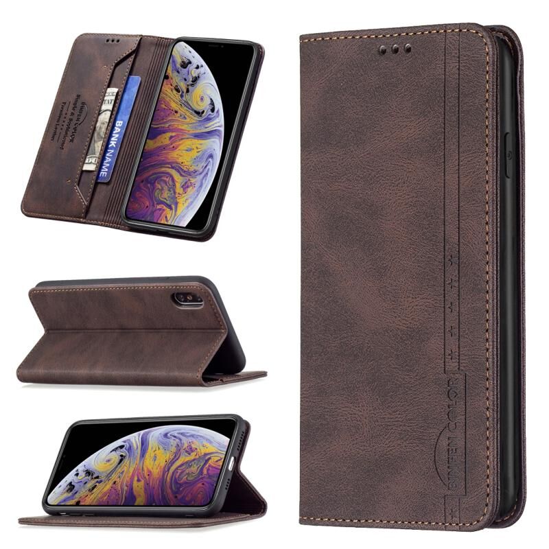 Θήκη δέρματος με μαγνητισμό, μπλοκάρισμα RFID και προστασία από κλοπή για iPhone XS Max, με θήκη και υποδοχές καρτών & πορτοφόλι (Καφέ)