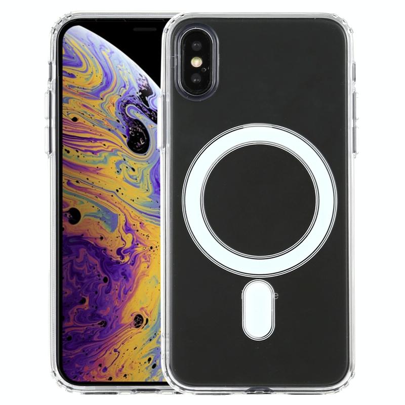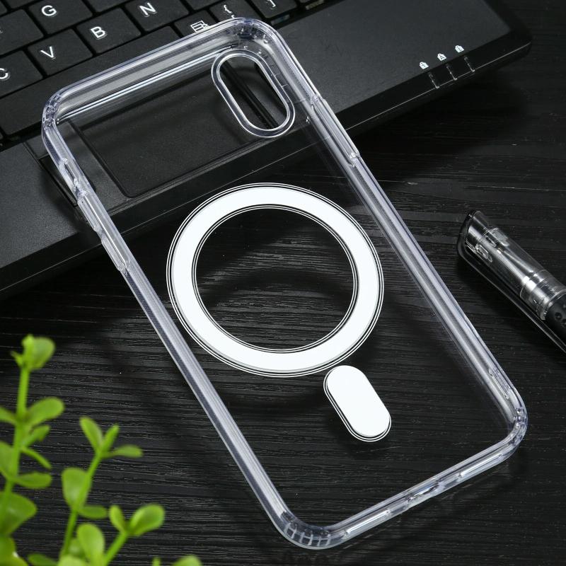 For iPhone XS Max Magsafe Case Simple Magnetic Ring All-inclusive Clear Crystal Acrylic PC +TPU Shockproof Case(Transparent)