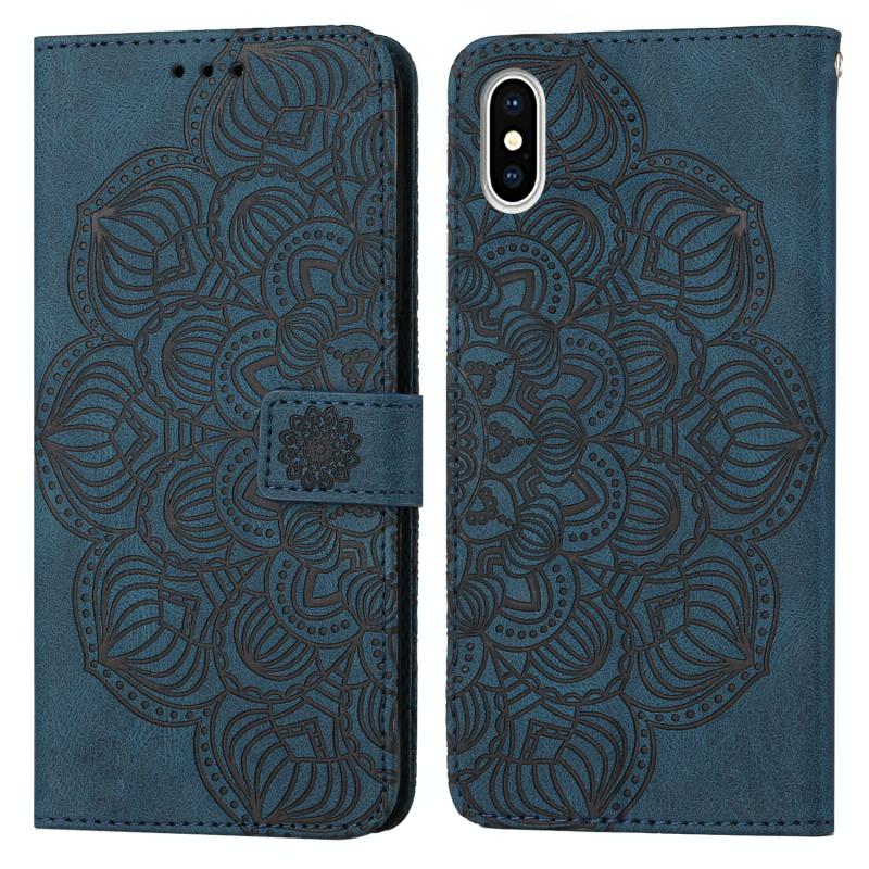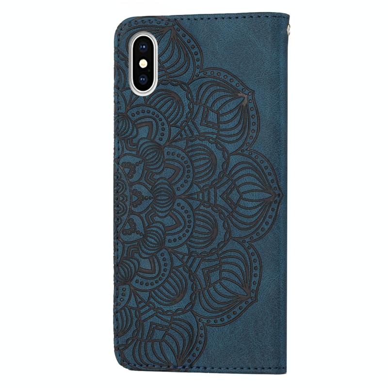 Θήκη τηλεφώνου από δέρμα με ανάγλυφο μαντάλα για iPhone XS Max (Μπλε)