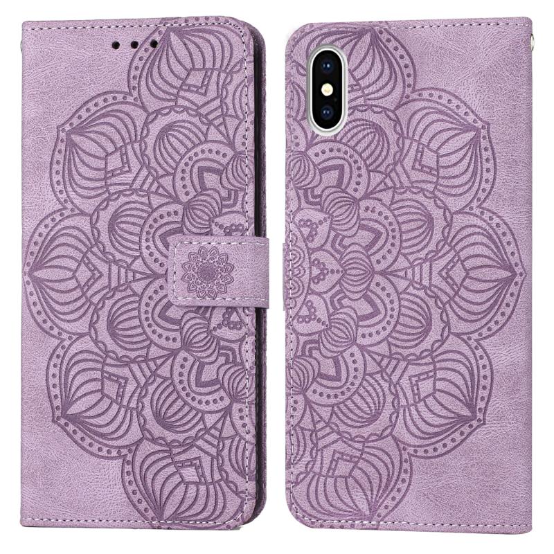 Θήκη τηλεφώνου από δέρμα με ανάγλυφο μαντάλα για iPhone XS Max (Μωβ)