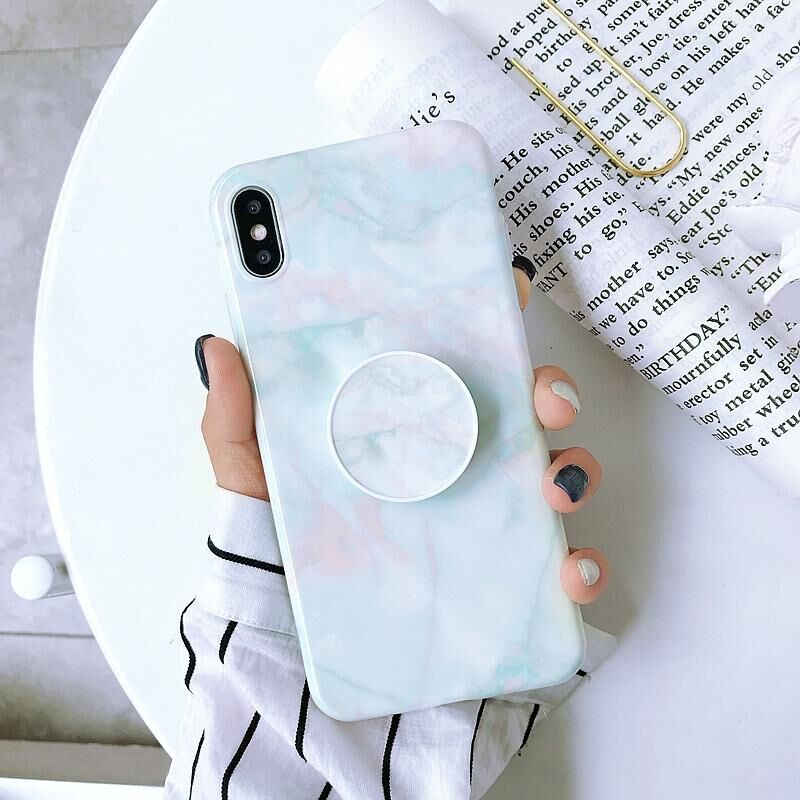 Θήκη προστασίας πλάτης από TPU με σχέδιο μάρμαρου, αντιολισθητική για iPhone XS Max με πτυσσόμενη βάση (Ροζ πράσινο)