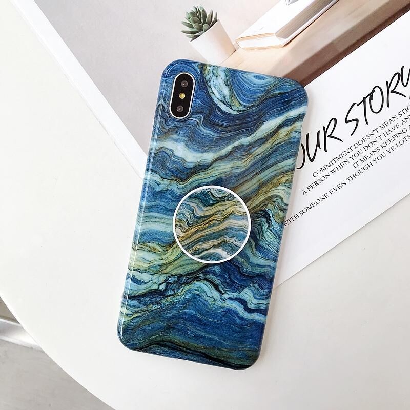 Θήκη προστασίας πλάτης από TPU με σχέδιο μάρμαρου και ενσωματωμένη βάση για iPhone XS Max, αντιολισθητική (Z13)