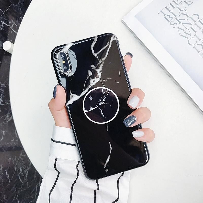 Θήκη προστασίας πλάτης από TPU με σχέδιο μάρμαρου και ενσωματωμένη βάση στήριξης για iPhone XS Max (Z32)