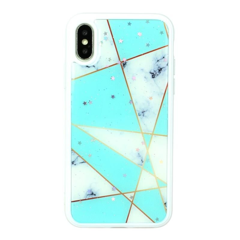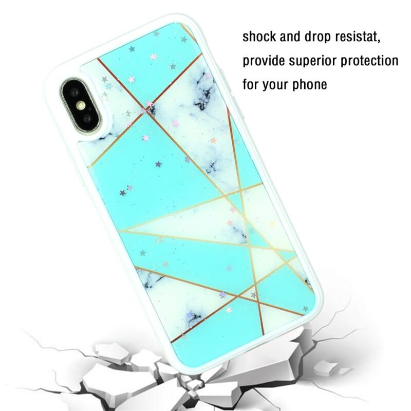 Θήκη προστασίας για iPhone XS Max, Σειρά Μαρμάρου, Αστέρια, Εποξική ρητίνη TPU με σχέδιο καρό (Πράσινο-Λευκό)