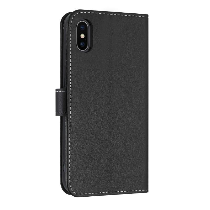 For iPhone XS Max Metal Bow Leather Phone Case with Hand Strap(Black)
