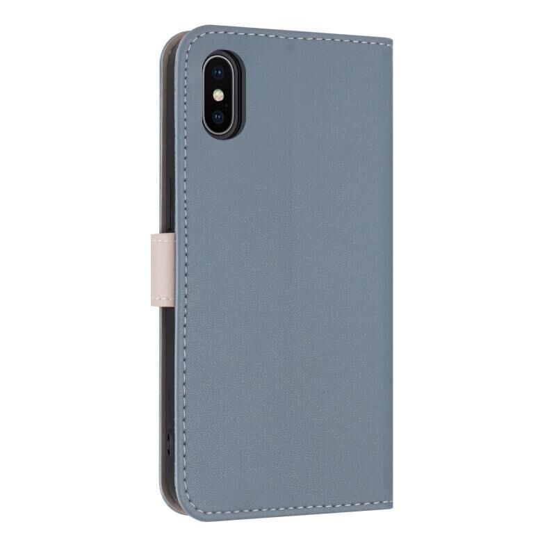 For iPhone XS Max Metal Bow Leather Phone Case with Hand Strap(Light Blue)