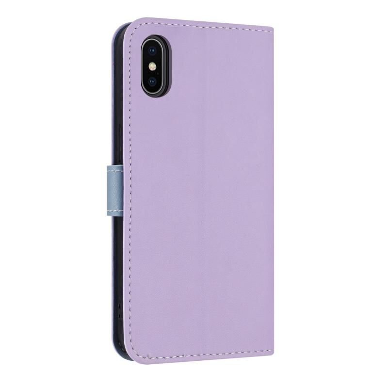 For iPhone XS Max Metal Bow Leather Phone Case with Hand Strap(Purple)