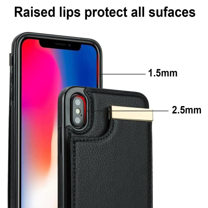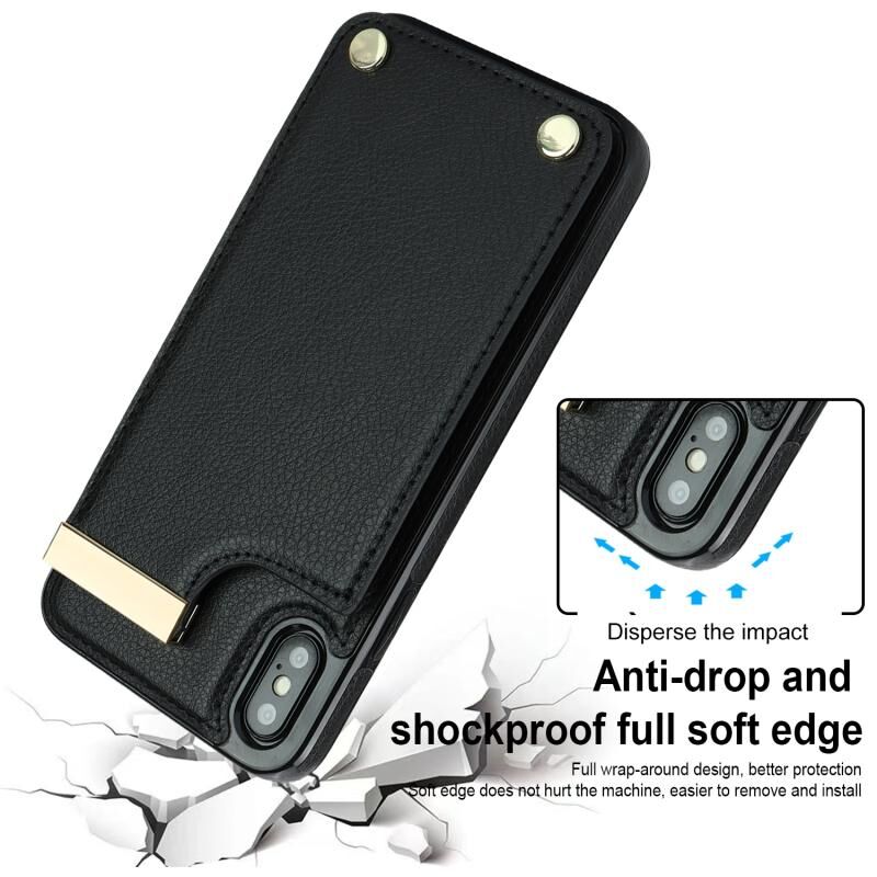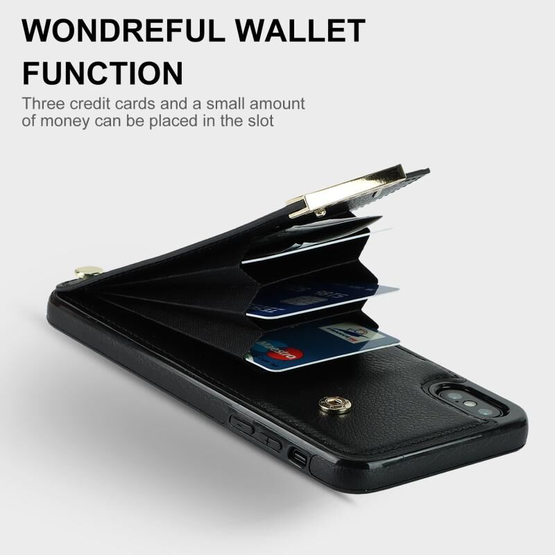 For iPhone XS Max Metal Buckle Card Slots Phone Case(Black)