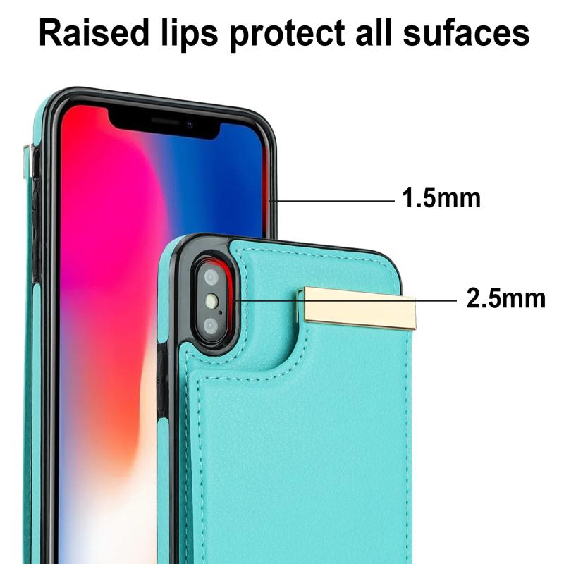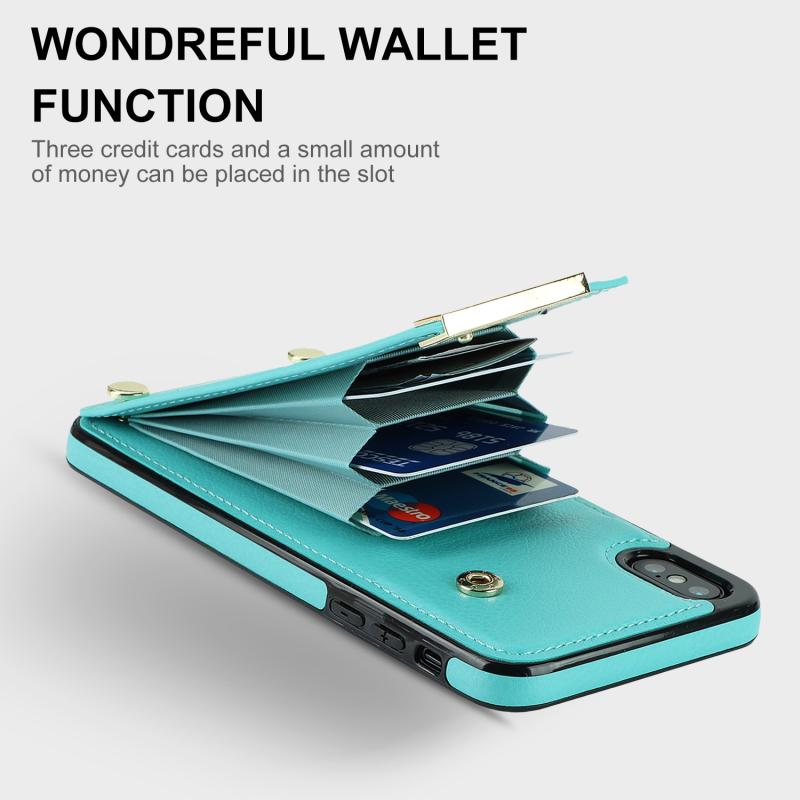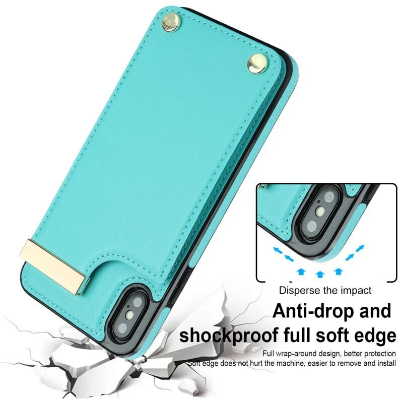 For iPhone XS Max Metal Buckle Card Slots Phone Case(Green)