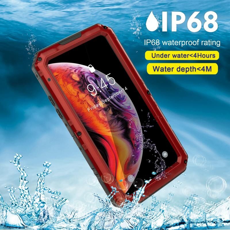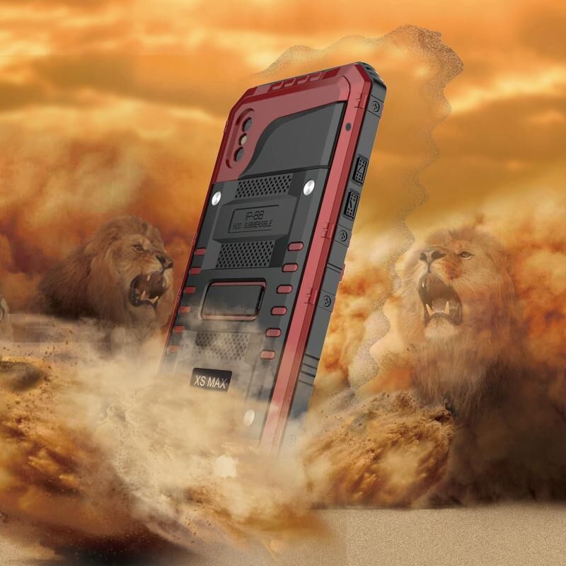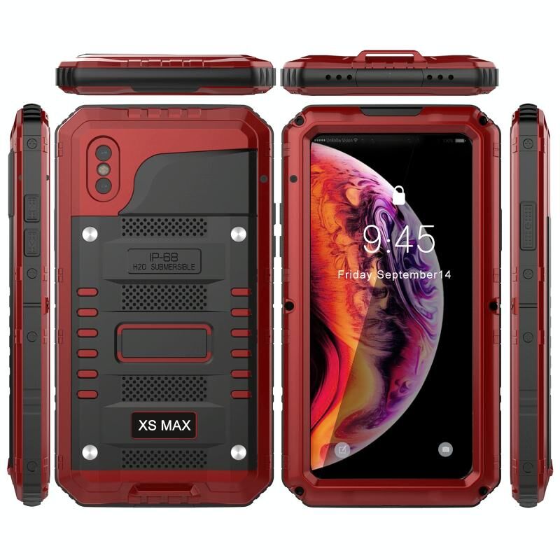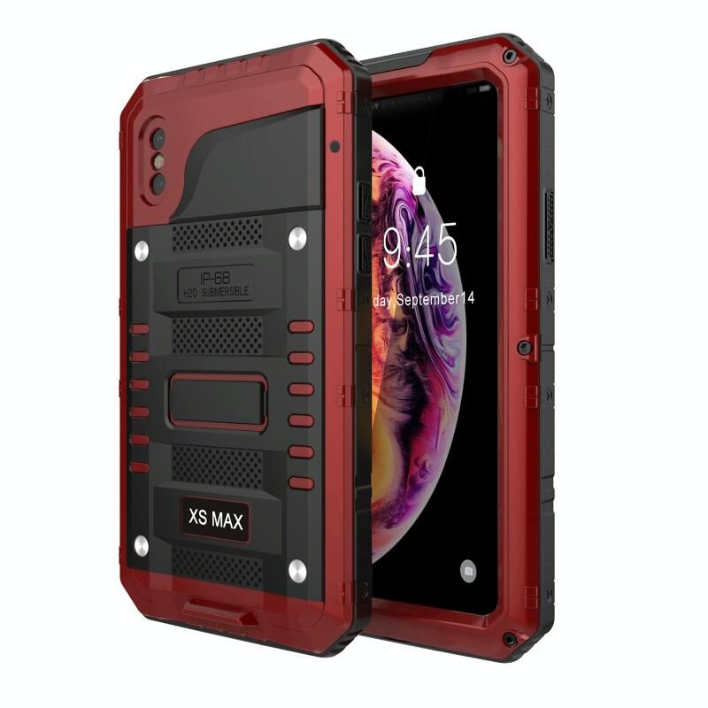 For iPhone XS Max Metal + Silicone Phone Case with Screen Protector(Red)